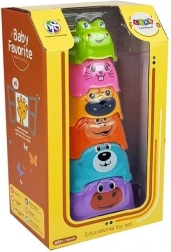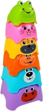 Den farverige pyramide er et legetøj, der fremragende understøtter dit barns udvikling. Den indeholder klodser i forskellige farver, som er trykt med dyremotiver. Øverst på pyramiden er den mindste klods formet som en frø. Klodserne er lavet af sikkert, ikke‑giftigt materiale, der er robust og holdbart.