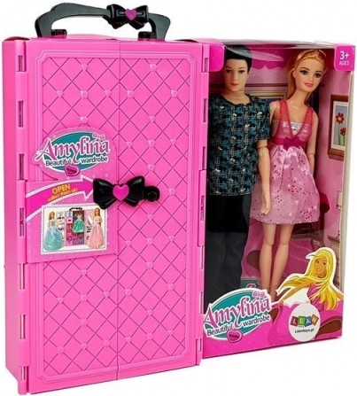 Stilfuldt dukkesæt med transportabelt garderobeskab i kuffert giver timevis af kreativ leg. Indeholder 2 dukker – en dreng og en pige, rigt tilbehør, garderobestang og skuffe. Perfekt til mix & match af outfits, rejser og leg med venner. Et sikkert valg fra 3 år, med CE-certificering og EN 71-standard.