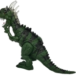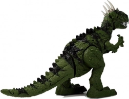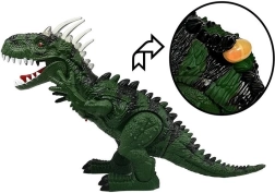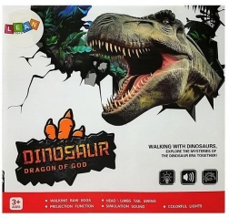 Dinosauren bevæger sig selv fremad, drejer hovedet, åbner gabet og brøler som en ægte rovdyr. Farverig bagbelysning i skællene på hovedet giver hver scene ekstra spænding.