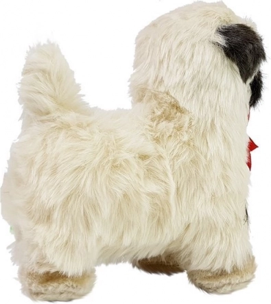 Den interaktive plysmops vil glæde enhver lille hundeelsker. Den reagerer på berøring – når du kærtegner den, begynder den at gø, bevæge hoved og hale. Når du trykker på knappen på siden af maven, bevæger den poterne, går fremad, gør, og i baggrunden spiller en venlig melodi. Den bløde cremefarvede pels med sorte ører og næse ser realistisk ud og indbyder til kram.