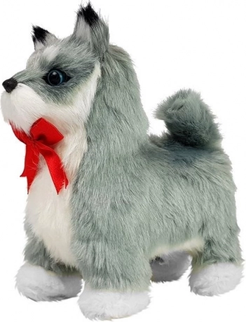 Den søde interaktive Husky vil glæde ethvert barn. Ved berøring gøer den, bevæger hoved og hale, og når man trykker på siden, går den fremad med en glad melodi. Den bløde grå-hvide pels, blå øjne og rød sløjfe giver ekstra charme. Ideel til børn fra 3 år, med CE-certificering og EN71-standard.