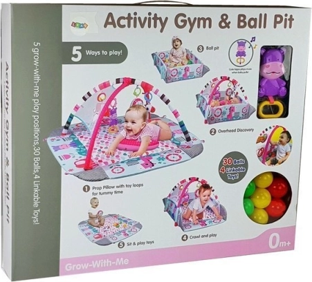 Stor 5-i-1 lege- og aktivitetsmåtte til børn med flodhest og bolde