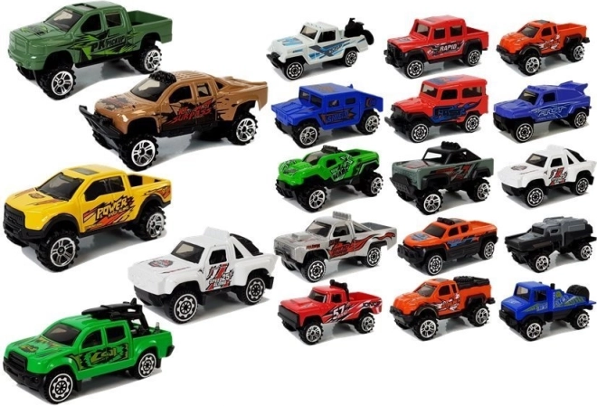 Styrk børns fantasi og passion for biler med dette omfattende sæt terrængående biler. Sættet indeholder 20 unikke biler, hver i forskellig farve og design, som giver ubegrænsede muligheder for leg og kreativitet.