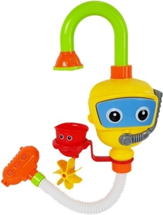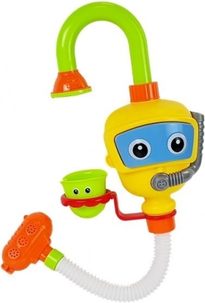 Dette legetøj er en fantastisk tilføjelse til badet for spædbørn. Dets funktioner understøtter selvstændig leg og giver mulighed for at opdage mekanismerne ved at hælde vand fra kopper. Bagsiden af robotten er udstyret med sugekopper, som gør det muligt at fastgøre den til badet, mens den nederste del af legetøjet skal være nedsænket i vand. Når det er fastgjort, skal du blot trykke på robotbrillerne, hvilket får vandet til at strømme fra bruseren til fontænen. Med specielle kopper kan vandstrømmens retning nemt ændres, og de bevægelige dele af legetøjet skaber et vandfald.