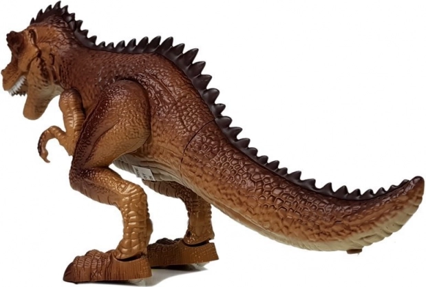 Når den tændes, bevæger dinosauren sig automatisk fremad; dens skridt og brøl lyder som i en film, og øjnene lyser rødt for maksimal spilatmosfære.