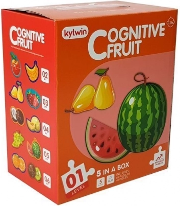 Dette smart designede sæt tilbyder fem separate mini-puslespil med frugtmotiver, som guider børnene trin for trin. Hver æske tilføjer brikker og øger sværhedsgraden (4–6–8–10–12), så barnet naturligt udvikler sig og styrker sine færdigheder. På bagsiden står frugtnavnene på engelsk, hvilket også understøtter tidlig sproglig opfattelse.