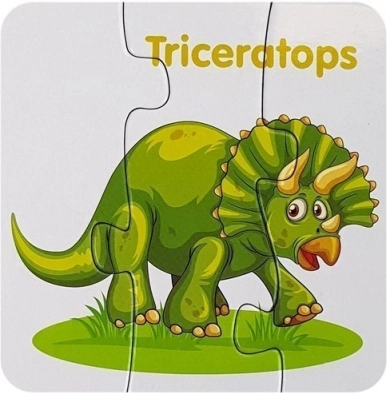 Klog læring gennem leg: farverige dinosaurpuslespil motiverer børn til at udforske og udvikler naturligt ordforråd på engelsk. Hver dinosaur er tydeligt illustreret og mærket med det engelske navn, så børn let tilegner sig nye ord.