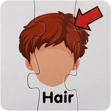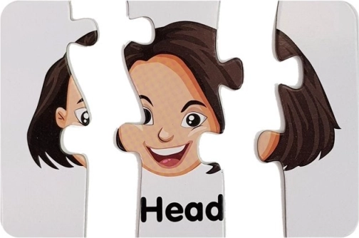 Denne pakke indeholder kartonpuslespil med illustrationer af kropsdele, hver med en tydelig engelsk betegnelse (fx Eyes, Nose, Mouth, Hand). Takket være selvkontrollerende parring kan børn nemt tjekke rigtigheden, hvilket styrker selvstændighed og selvtillid.