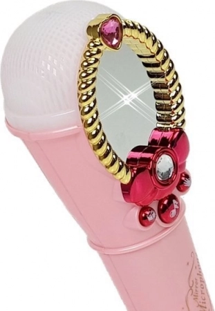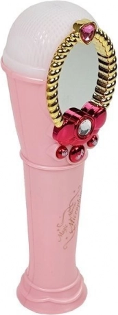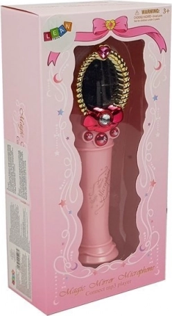 Denne børne-karaoke-mikrofon i lyserød farve motiverer til sang, rytme og det første scenemod. Når den tændes, dukker en lille pige-figur magisk op i det dekorerede spejl, mikrofonens ender lyser flerfarvet, og tre funktionsknapper giver musik og rytmiske effekter.