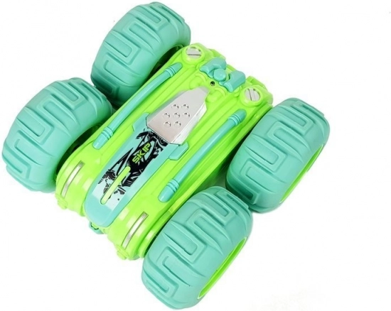 Den grønne, dobbeltsidede RC-bil i skala 1:24 er ideel til børn, der elsker action på både land og i vand. Takket være de store terrændæk, den robuste ABS-konstruktion og 2,4 GHz-frekvens klarer den kørsel frem/tilbage og sideværts, 360° rotationer og kørsel på begge sider. Vandtæt forsegling beskytter elektronikken, så du kan nyde sjov på forskellige underlag uden kompromiser.