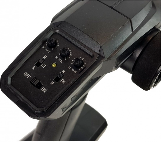 Den ergonomiske sender muliggør glidende gasregulering, justering af styrevinkel og hastighedsbegrænsning. Uden forstyrrelser, ideel til fælles ræs.