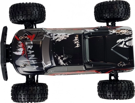 Modellen er udstyret med en kraftig 540 børstemotor, har oliefyldte metalstøddæmpere og holdbare gummidæk for pålidelig trækkraft. Det genopladelige batteri 7,4 V / 1700 mAh giver cirka 18 minutters kørsel (afhængigt af brug), opladning via USB-oplader.