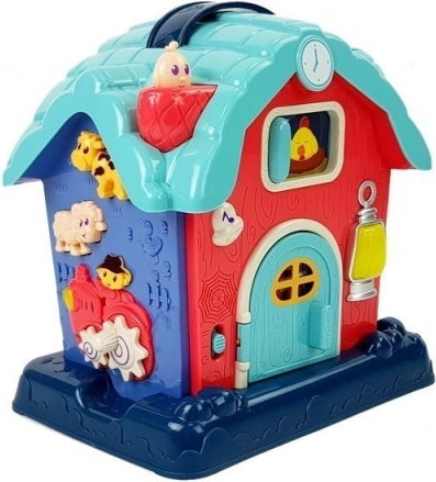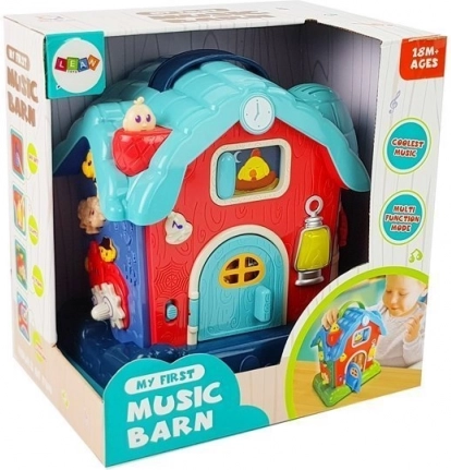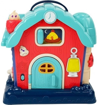 Gården tilbyder dyrelyde, lyseffekter og historier fortalt af en lille figur i skorstenen. Døre, klokker og dyr laver karakteristiske lyde, der fastholder dit barns opmærksomhed. Legetøjet har også to lydstyrkeniveauer til at tilpasse oplevelsen.
