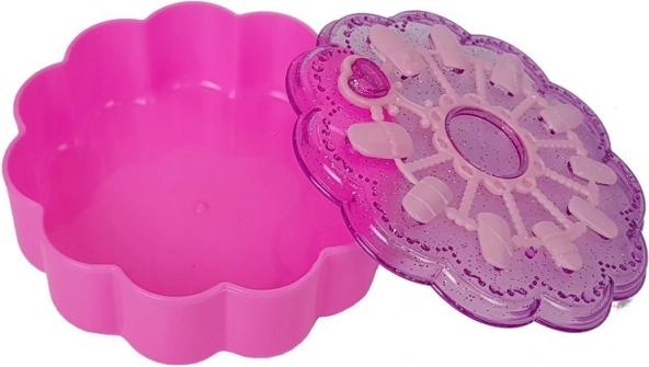 Den plastiske boks i blomsterform er ideel til opbevaring af alle sættets komponenter. Den er et attraktivt tilbehør til dit barns værelse.
