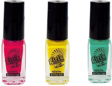 Vi tilbyder tre basisfarver – grøn, gul og pink. Lakkerne tørrer hurtigt og gør påføringen let og hurtig.