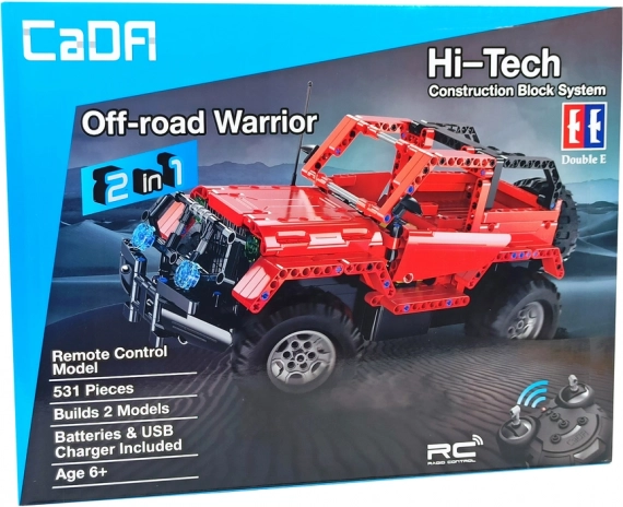 Byg din egen terrængående bil af 531 dele og styr den på afstand via 2.4G. De holdbare og let sammenklikkelige CADA-klodser udvikler kreativitet, finmotorik og logisk tænkning. Medfølger fjernbetjening, USB-oplader og 400 mAh batteri til 10–15 minutters kørsel, rækkevidde op til 25 m.
