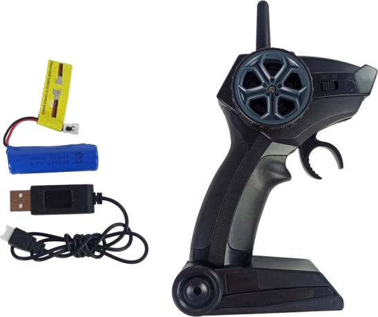 To uafhængige motorer og dobbelt ror giver fremragende manøvredygtighed og kvik acceleration. Det integrerede Li-ion-batteri 3,7 V / 650 mAh giver op til 20 minutters sjov, og opladning tager cirka 60 minutter. Den ergonomiske pistolgrebs-controller ligger godt i hånden og muliggør præcis styring frem, tilbage og til siderne.