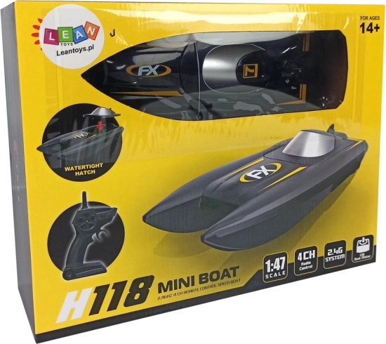 Sjov og hurtig RC-båd i skala 1:47 til kapsejlads på vandet. Takket være 2,4 GHz uden interferens, dobbeltmotorer og vandtæt konstruktion er båden hurtig, adræt og pålidelig. Rækkevidde på op til 50 m, drift i omkring 20 minutter og nem styring frem/tilbage/rotation gør den til et godt valg til sø, dam og pool.