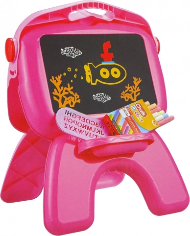 Opdag kreativ leg med denne dobbeltsidede tegnetavle med projektor i lyserød. Den tilbyder to tegneflader (hvid til tør-slet tuscher og sort til kridt), projektion af motiver til at tegne efter samt rigt tilbehør til timevis af skaberi. Understøtter børns finmotorik, fantasi og grafomotoriske færdigheder.