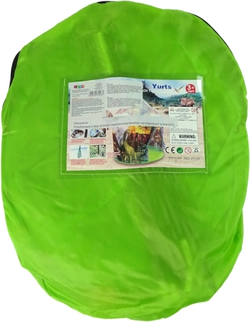 Opdag et magisk skjulested for små eventyrere – et børnetelt med dinosaurmotiver i grøn. Det tilbyder hurtig og nem montering, sikker og komfortabel leg både inde og ude, og takket være den stabile ramme og det vandafvisende polyesterstof er det ideelt til daglig sjov. To netvinduer og en oprullig indgang med velcro sikrer god luftcirkulation og komfort.