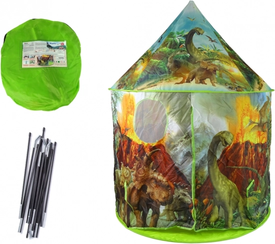 Børneteltet med dinosaurer forvandler værelset eller haven til et hemmeligt gemmested fuld af fantasi. De glade print af forhistoriske dyr stimulerer nysgerrighed og leg med venner og bamser. Takket være den lette konstruktion og de kompakte mål er det nemt at transportere og opbevare.