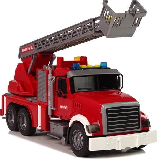 Yderligere funktioner som lyd- og lyseffekter giver hele legen effekt og realisme. Advarselslygter øverst signalerer bevægelse, knapperne øverst står for lydene – horn, motorstart, sirene. Takket være den røde farve vil bilen være synlig på lang afstand. Brandbilen har friktionsdrev på bagakslen push-pull, det er nok at trykke bagpå, slippe fremad og nyde farten.