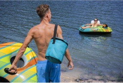 Den integrerede taske/køler holder dåser og flasker kolde i længere tid – ideel til en hel dags afslapning ved søen eller i poolen.