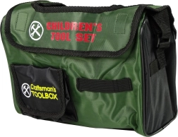 Den holdbare taske med hank og skulderrem holder alle dele samlet. Nem at transportere og hjælper med at holde orden i børneværktøjet.