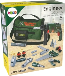 Støt fantasien og færdighederne hos små gør-det-selv’ere med et komplet børneværktøjssæt i en robust taske. Sættet inkluderer en realistisk batteridrevet boremaskine med lydeffekter og revers, sav, hammer, skruetrækker, svensknøgle, bidetang og andre tilbehør. Takket være let og sikkert plast er værktøjet tilpasset små hænder, mens den stof taske med hank og rem gør det nemt at bære og opbevare.