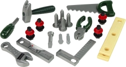 Sav, hammer, skruetrækker, svensknøgle, bidetang, skruer, møtrikker og plader – alt hvad den lille gør-det-selv’er behøver for at træne finmotorik og fantasi.
