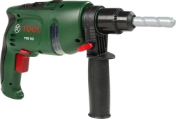 Boremaskinen afgiver lyde og muliggør ændring af rotationsretning, så børnene får følelsen af rigtig boring. Tre udskiftelige bor udvider lege-mulighederne.