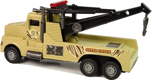 Denne detaljerede bugseringsvogn “Super Truck” er ideel til actionfyldte scenarier på børnebyggepladsen og ved “trafikulykker”. Den bageste kran med udtrækkelig wire og krog betjenes med et praktisk sidehåndsving, så barnet nemt kan fastgøre og flytte en anden legebil til “slagmarken” eller parkeringspladsen.