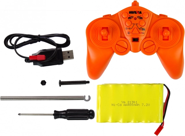 Fjernbetjeningen med 2,4 GHz og to joysticks giver præcis og problemfri styring: kørsel frem/tilbage, drejning, styring af arm og skovl samt automatisk demo af funktionerne. Modellen er ideel til at udvikle fantasi, koordination og rolleleg hos børn.
