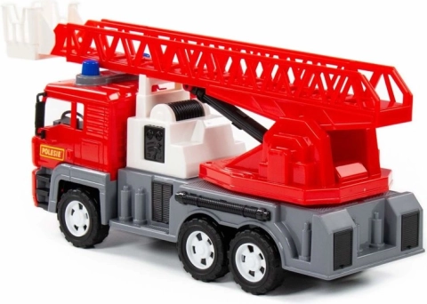 Den røde brandbil Almaz er et fantastisk valg for alle børn, der elsker redningsaktioner. Den robuste konstruktion, realistiske detaljer i kabinen og funktionel stige med rotation og løft lader børn redde dyr og slukke imaginære brande. Takket være de profilerede hjul klarer den også ujævne underlag.