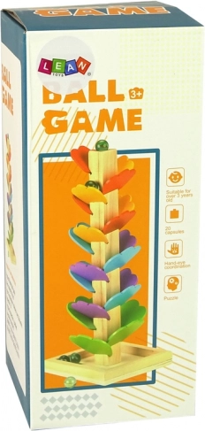 Trælegetøj er et fremragende valg til små børn takket være dets tidløshed og robusthed. Dette træ med kuglebane er designet til at hjælpe med at udvikle motorik, kreativ tænkning og farvegenkendelse. Børn lærer præcision ved at placere de farvede blade de rigtige steder på træet, mens de følger kuglernes vej ned.