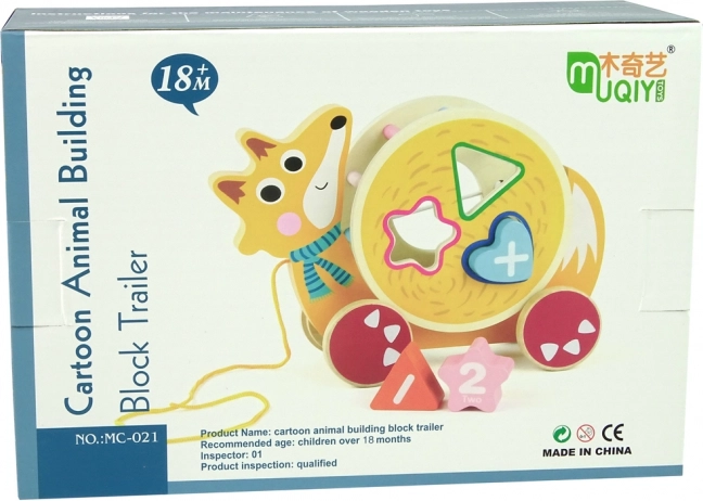Legetøjets mål: 23 cm x 10 cm x 17 cm. Klodsernes mål: ca. 4 cm x 4 cm. Emballagens mål: 23 cm x 16 cm x 10 cm. Trælegetøjet er beregnet til børn fra 18 måneder, har CE-certifikat og er fremstillet i overensstemmelse med EN 71.