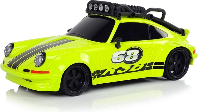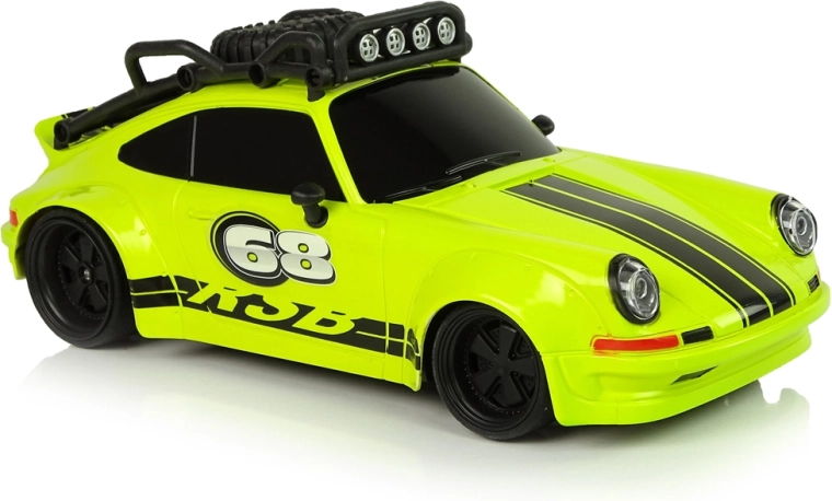 Bilen har en let og solid konstruktion, sportigt design med sorte striber på taget og motorhjelmen. Det ydre look er imponerende. På taget er der monteret en tagbøjle med reservehjul og forlygter. Intet vil overraske dig under høj hastighed. Gummidæk sikrer vejgreb. At styre bilen er stor sjov, især for de mindste. Bilmodellen kan styres med den medfølgende fjernbetjening, som har to separate knapper til kørsel frem/tilbage og til siderne.