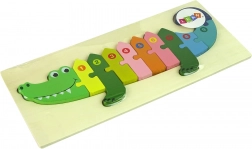 Trækrokodille med tal er et fantastisk læringslegetøj, der på legende vis støtter indlæring af at tælle fra 1 til 10. Hver brik bærer et tal, så børnene træner logisk tænkning, finmotorik og hånd–øje-koordination. De livlige farver og den behagelige træoverflade indbyder til udforskning og gentagen samling.