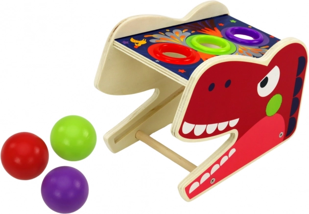 De farvede kugler bankes ned i hullerne i dinosaurkroppen, hvilket træner præcision, grebsstyrke og hånd–øje-koordination på en sjov måde.