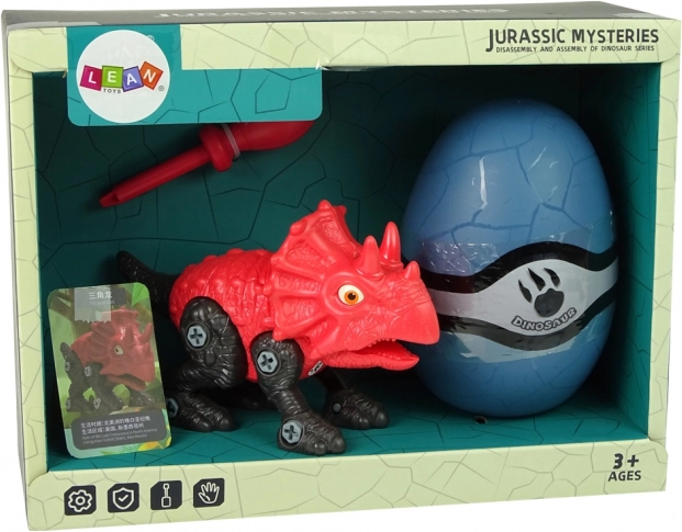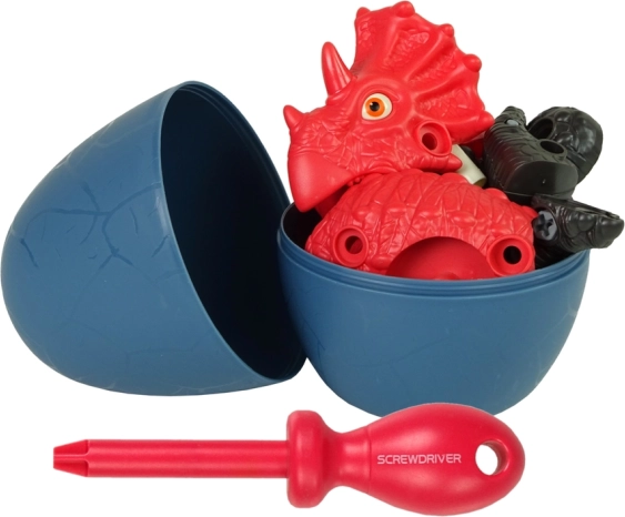Byg din egen triceratops! Dette kreative sæt til børn kombinerer DIY-sjov, finmotorisk udvikling og logisk tænkning. Dinosauren kan skilles ad og samles igen ved hjælp af den medfølgende skruetrækker, delene er bevægelige, og det hele kan opbevares i ægget. Fremstillet af sikkert, kvalitetsmateriale med CE-certificering i henhold til EN 71.