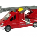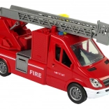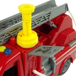 Brandbilen er udstyret med et system, der gør det muligt at sprøjte vand fra slangen, hvilket giver børnene en realistisk leg.