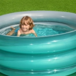 Den oppustelige børnepool fra Bestway er specialdesignet til børn fra 3 år. Med målene 150 cm x 53 cm giver den masser af plads til sjove vandaktiviteter. Gennemsigtige sider med en metallisk sølvfarvet side giver et stilfuldt look, som vil tiltale ethvert barn.
