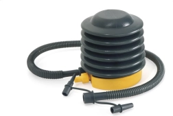 Der medfølger en fleksibel slange og et sæt med 3 udskiftelige mundstykker, så du uden besvær kan puste oppustelige madrasser, badelegetøj, bolde og mindre både op. Et slagvolumen på 500 cm³ (0,5 l) pr. pumpeslag hjælper med hurtigt og effektivt at levere den nødvendige luft.