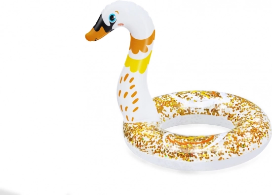 Giv dit barn mere glæde og tryghed i vandet med en oppustelig ring formet som en elegant svane. De skinnende glimmerstykker indeni fanger øjet ved første blik og øger samtidig barnets synlighed i vandet. Ringen er fremstillet af robust PVC, der klarer sommerens leg ved poolen og på stranden.