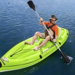 Let og stabil oppustelig kajak til én person, ideel til rekreationsroning og fiskeri. Den har en holdbar konstruktion i vinyl, integreret ryglæn for komfort, stangholder, paddleholdere og en aftagelig finne for bedre manøvredygtighed. I sættet medfølger paddel, håndpumpe og reparationsplaster.