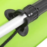 Praktiske detaljer som holder til fiskestang, elastiske bungees til opbevaring af udstyr og paddleholdere gør hver tur nemmere. Den aftagelige finne øger retningsstabiliteten, mens den medfølgende Air Hammer-håndpumpe og dobbelt aluminiumspaddel giver en hurtig start. Efter turen tømmes kajakken let for luft og pakkes væk – den er kompakt og let at transportere.
