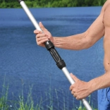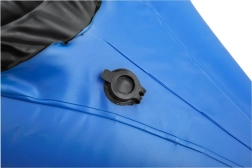 For præcis retningsføring og sikre tag er kajakken udstyret med to aftagelige finner, som du nemt kan tilpasse efter forholdene. Praktiske opbevaringszoner med elastiske bungee-snore for og agter rummer småting, snack og let udstyr. Efter turen tømmes båden hurtigt for luft, og takket være den lave vægt kan den let bæres.