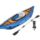Medfølger: dobbeltsidet paddel, Bestway Air Hammer håndpumpe og reparationsplaster. Takket være den lave vægt kan kajakken hurtigt pumpes op, pakkes sammen og tages med overalt.