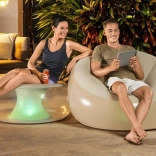 Den holdbare konstruktion og bløde, flokkede overflade sikrer komfort både til siddende og loungende brug. En hurtig udluftningsventil sparer tid ved pakning. Maksimal belastning på 100 kg dækker de fleste daglige behov. Belysningen drives af batterier (medfølger ikke i pakken).