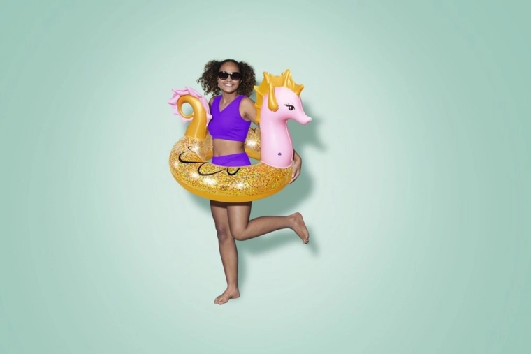 Med glitrende detaljer tilføjer svømmeringen et ekstra niveau af sjov og visuel glæde.